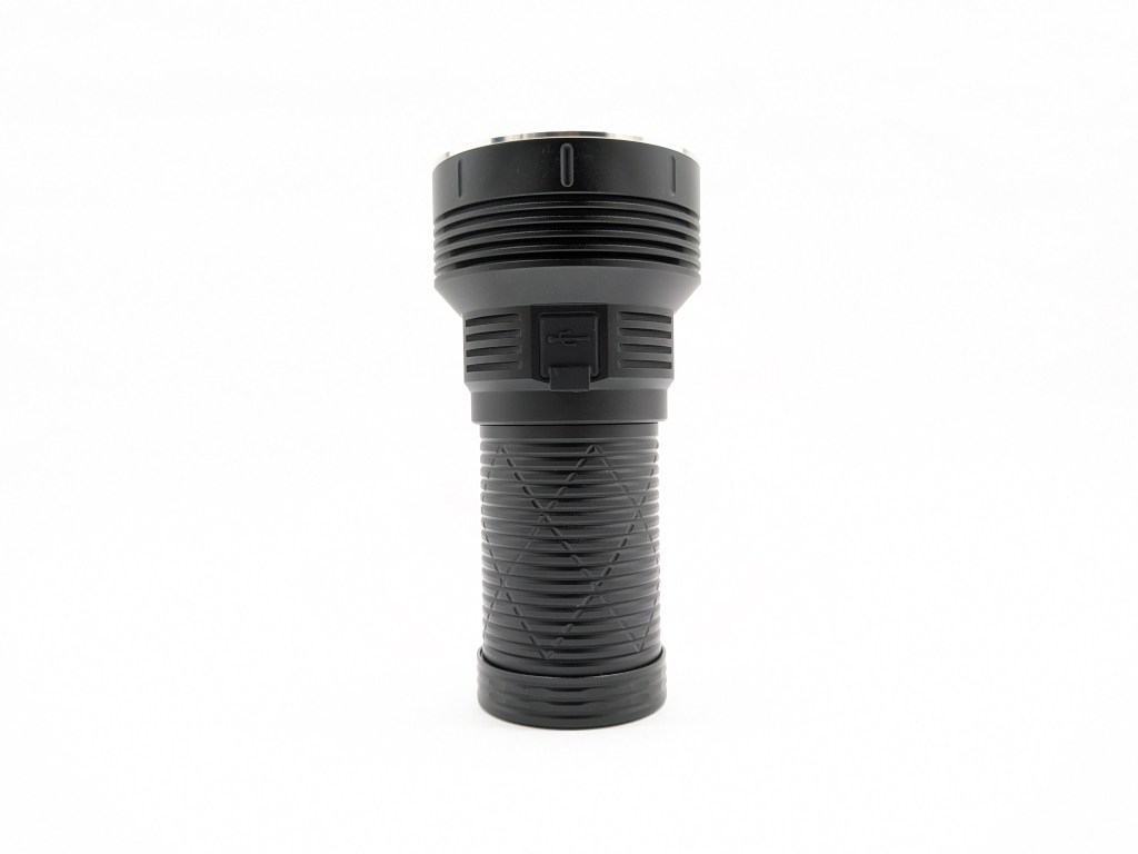 Charging is facilitated by a USB-C port under a silicone cover on the side of the head. Charging takes 4.5-5 hours. There is no powerbank function, which is a shame. That’s an expected feature on a light this size with a charging port. The buck driver mention on the product page has powerbank functionality, but I don’t know if you can get it in this light. The light is fully functional while charging. If you plug it in without batteries, it’ll work, but the mode spacing is weird and it doesn’t get as bright.
