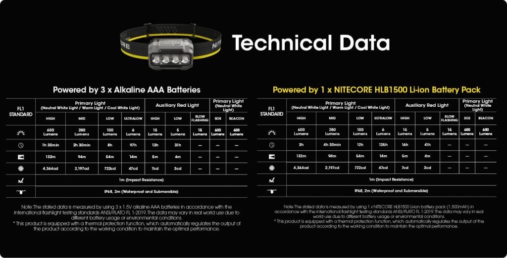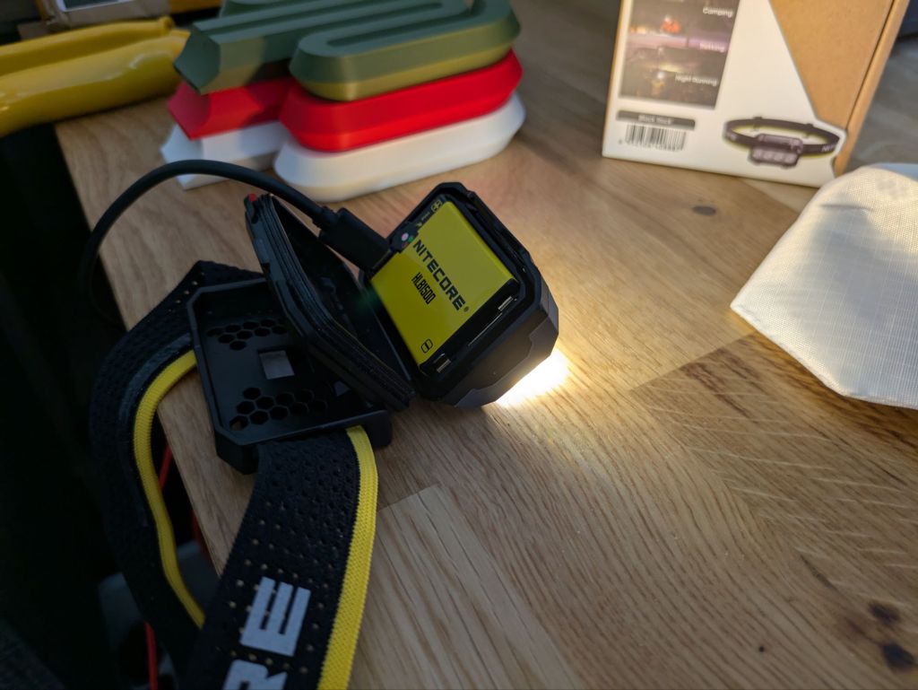 Nitecore NU25 MCT / NU25 MCT UL: These models are very similar to HA25 UHE (light weight, same buttons, presumably same UI, red light, adjustable color temp, plastic construction) but they have a built in battery and are USB-C rechargeable, where HA23 UHE can accept AAAs or the optional USB rechargeable battery.