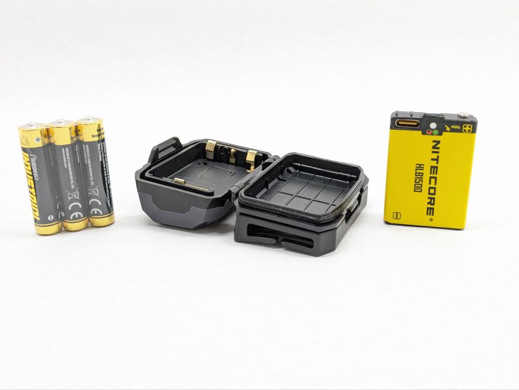 The battery options are great. A USB-C rechargeable pack is optionally included and will provide the best performance. It’s a Li-Hv pack, not a regular Li-ion, so it’s voltage range goes up to 4.35V. Alternatively, it can also accept AAAs in either the disposable Alkaline variety or the rechargeable NiMH variety.