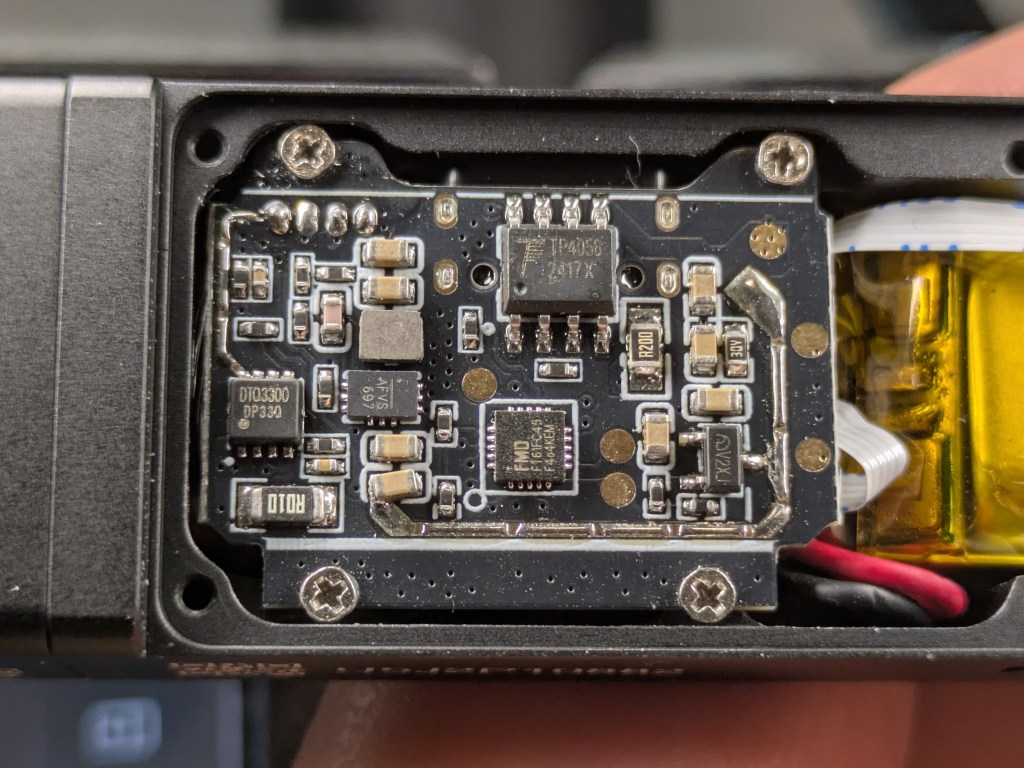 UV regulation: The UV LED stays a consistent brightness down to ~25% and then won’t work below that, so I think it may have its own boost circuit just for that LED. Normally UV LEDs are very poorly regulated unless they’re on a boost circuit.