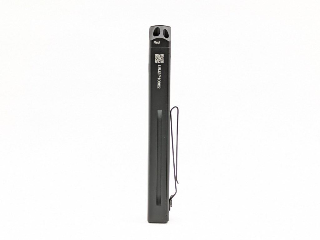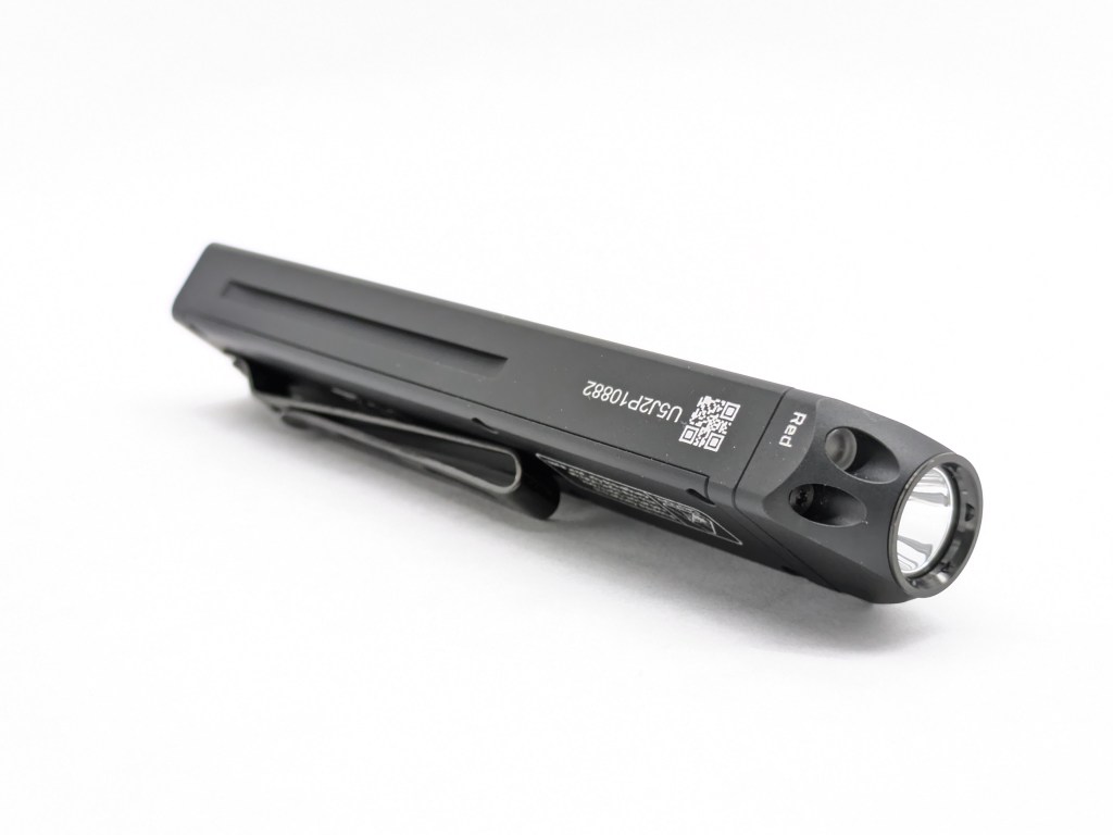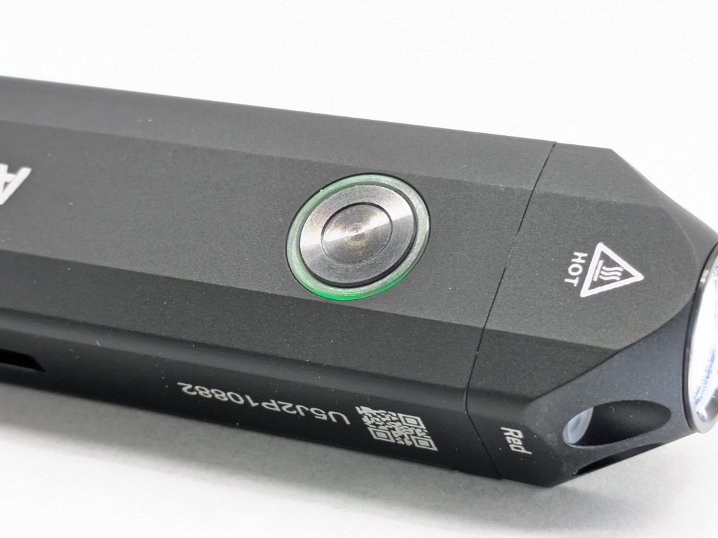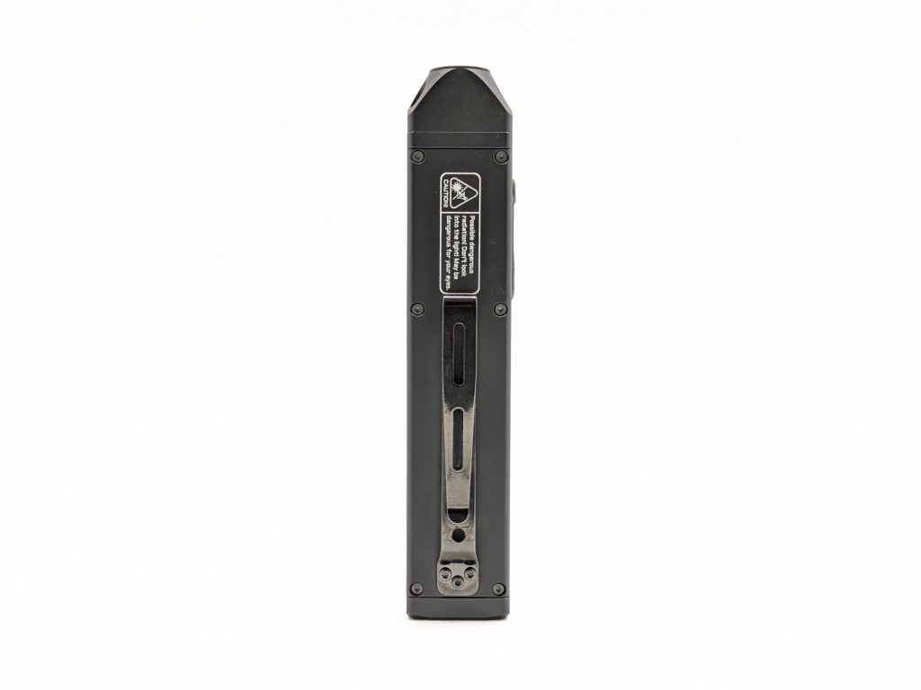 The CE and don’t trash labels are very nicely hidden under the pocket clip. That makes it extra strange that Acebeam put a big ugly “don’t shine this in your eyes” warning, QR code, and serial number in plain sight. These detract from the sleek look of the light.
