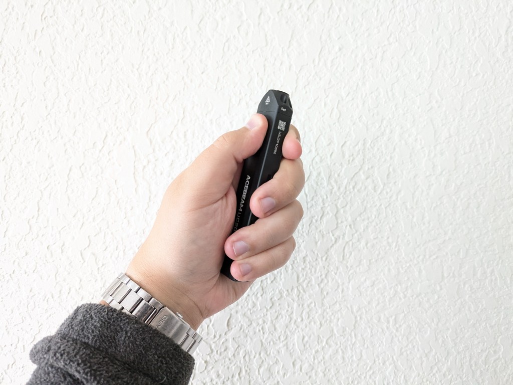 - Accessing red or UV modes will turn on the white light first and then switch to red or UV. That’s bad if you’re wanting to use red to preserve night vision. Acebeam should add a slight delay between the first click and the light turning on, so if you click again for read mode it goes directly to red.
