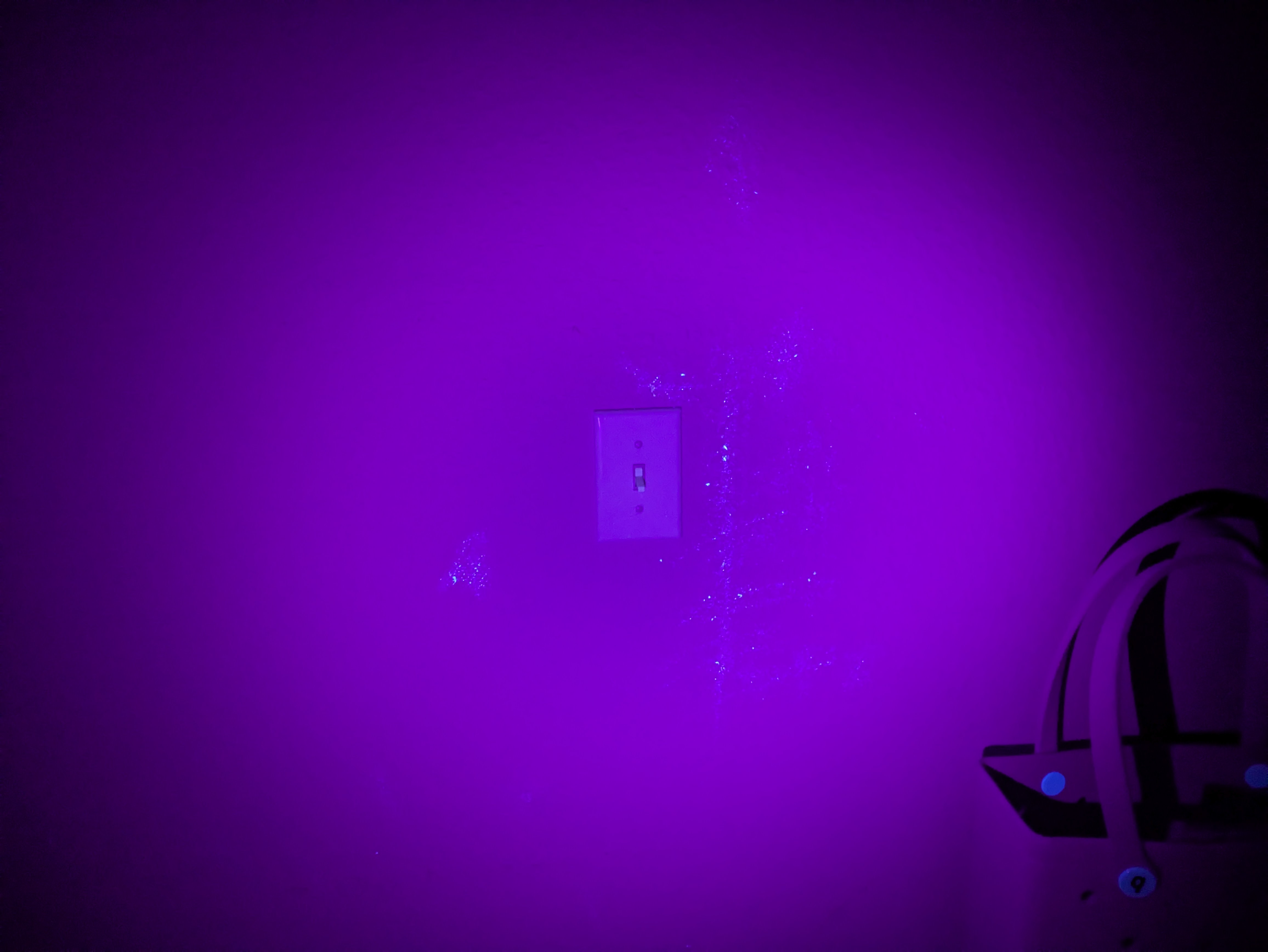 The red and UV “beams” aren’t focused, and because of where they sit on the head they shine sideways and are lopsided. The red isn’t great but it works well enough. The UV is pretty bad because it’s unfocused and has a ton of visible purple light. Here’s a comparison between this light’s UV and a Skihunt MiX-7 Gen 2 Plus with a proper reflector and ZWB2 filter.