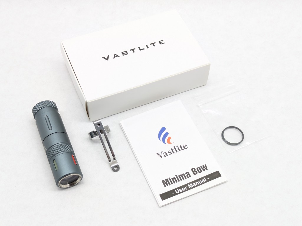 The box just says “Vastlite” and is made of white cardstock with a soft foam insert. Inside is: