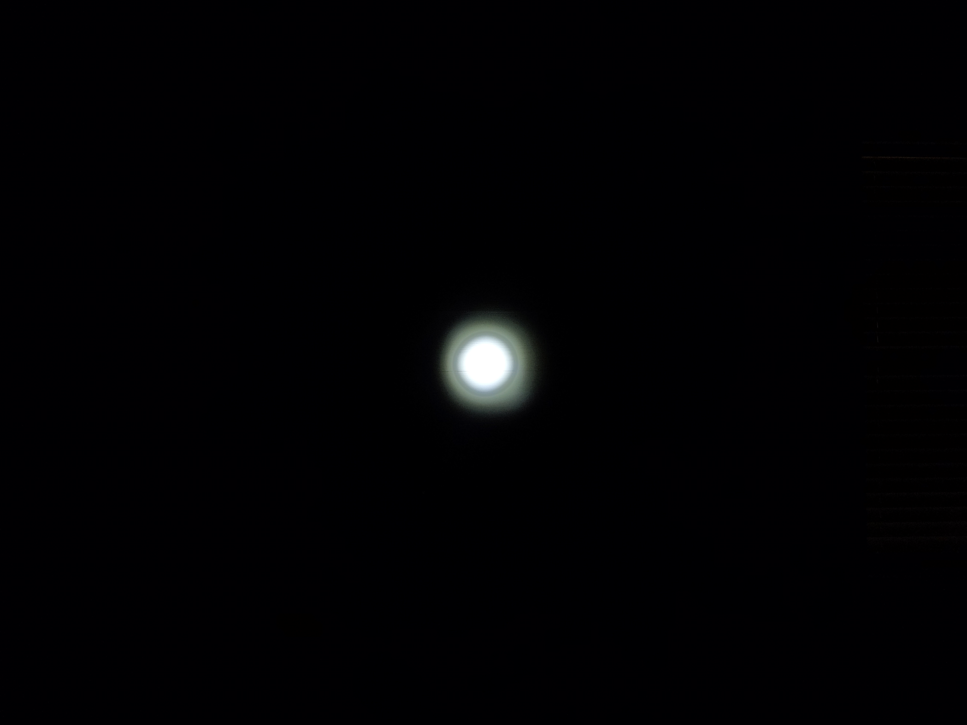 The beam is pencil thin and intense, as you’d expect from an LEP. There’s no spill nor any artifacts to speak of. The hotspot is soft around the edge (more of a round blob than a crisp circle) but there’s not a lot of that yellow shift at the edge that you sometimes see from aspheric lenses like this.