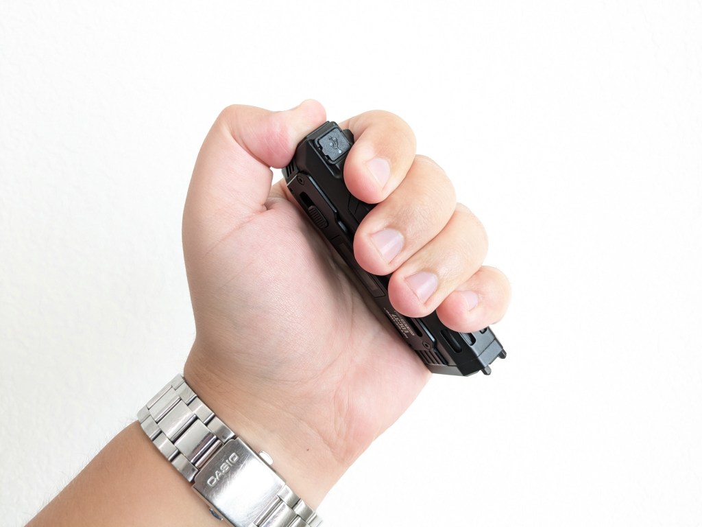 - There’s a dedicated lockout switch. It’s easier and faster to use than a bunch of clicks, a long hold, or loosening a tailcap.
