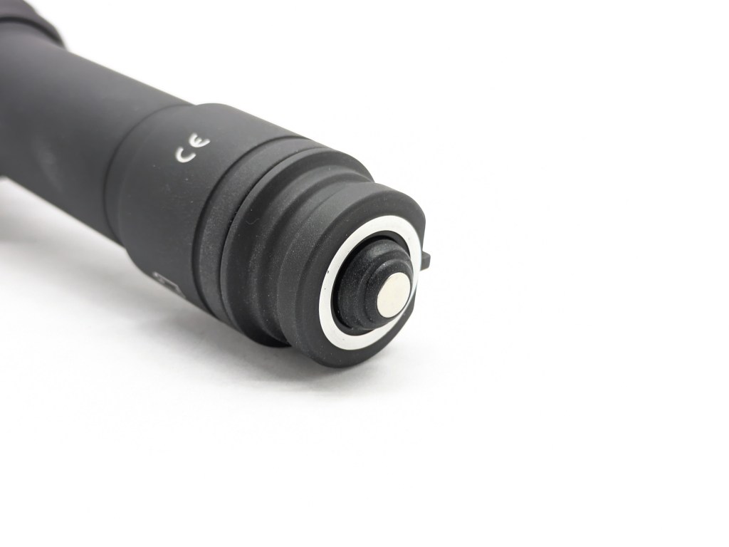 Charging is facilitated by a proprietary magnetic charging cable and some mating contacts on the tailcap. As far as I can tell, this system is unique to this light and isn’t compatible with other models from Armytek or other brands with magnetic charging. You do not have to loosen the tailcap for charging.