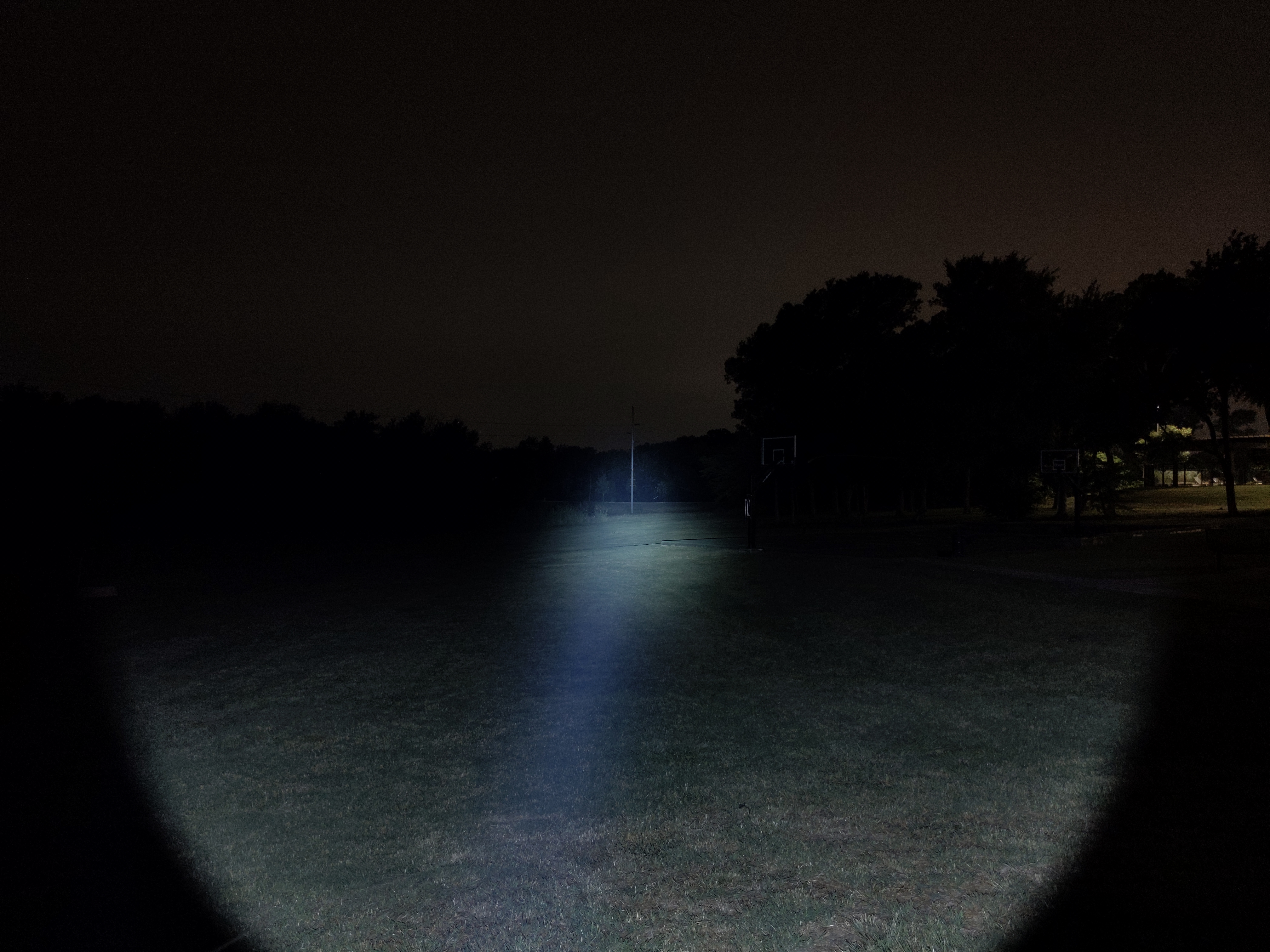 Disclaimer: All of my measurements are taken at turn-on. Lumen measurements were taken on a Texas Ace 3.5″ Lumen Tube. A candela measurement was taken at 10 meters with an Opple Light Master III on the highest brightness, and other candela figures were calculated relative to that. CRI, CCT, & DUV data were taken for each mode from a few feet away at the center of the hotspot with the Opple Light Master and Waveform DUV Calculator. Runtime tests were performed with the Ceilingbounce app on my smartphone. These tests were performed with a fully charged included battery unless otherwise specified. I cannot measure moonlight directly, so moonlight readings are calculated based on the brightness relative to the next-lowest mode. None of this is professional equipment, so take these measurements with a grain of salt.