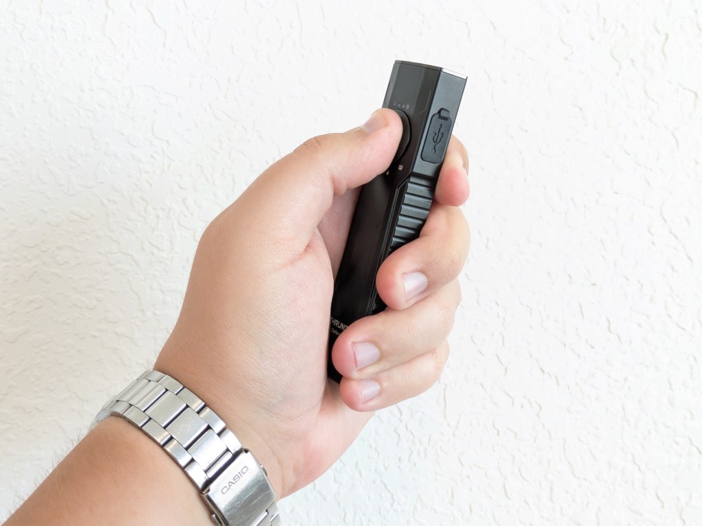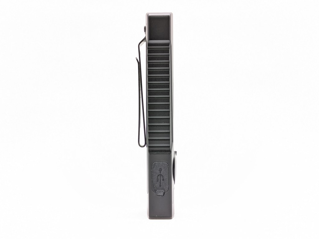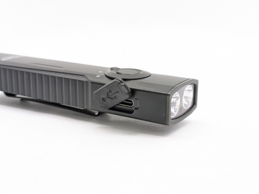 Charging is facilitated by a USB-C port on the side that’s covered by a silicone port cover. The cover is easy to open deliberately, but did not come open by accident while I carried the light. Charging takes about an hour and 15 minutes. The light is fully functional while charging. With such a small battery, naturally there’s no powerbank function.