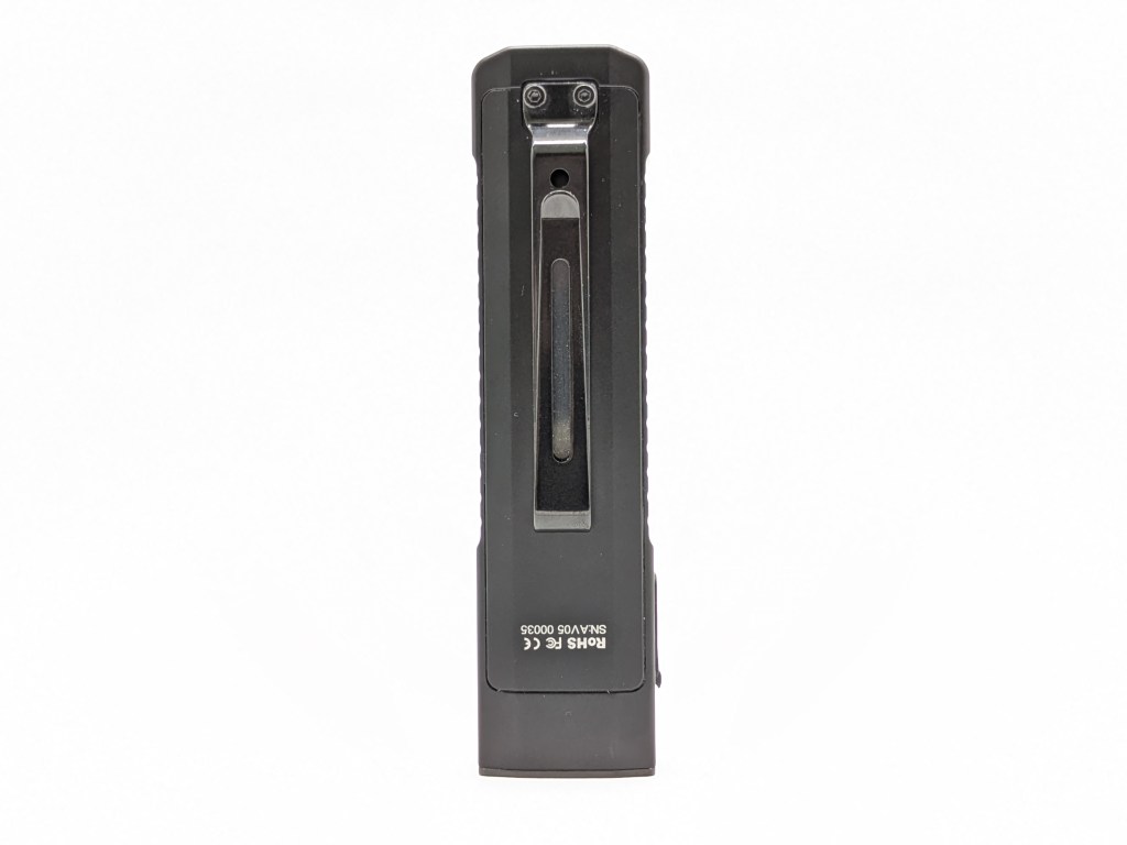 The battery is a built-in 1500mAh pouch cell. That’s pretty typical for lights in this class, but about half the capacity you’ll get from a similar-sized 18650 light. I removed the clip but didn’t see a good way to open the light without risking damage, so this battery isn’t user-replaceable. That sucks, and it comes with the territory. Most of these flat-style EDC lights have built-in batteries. If that bothers you, consider Acebeam UC20 as an alternative.