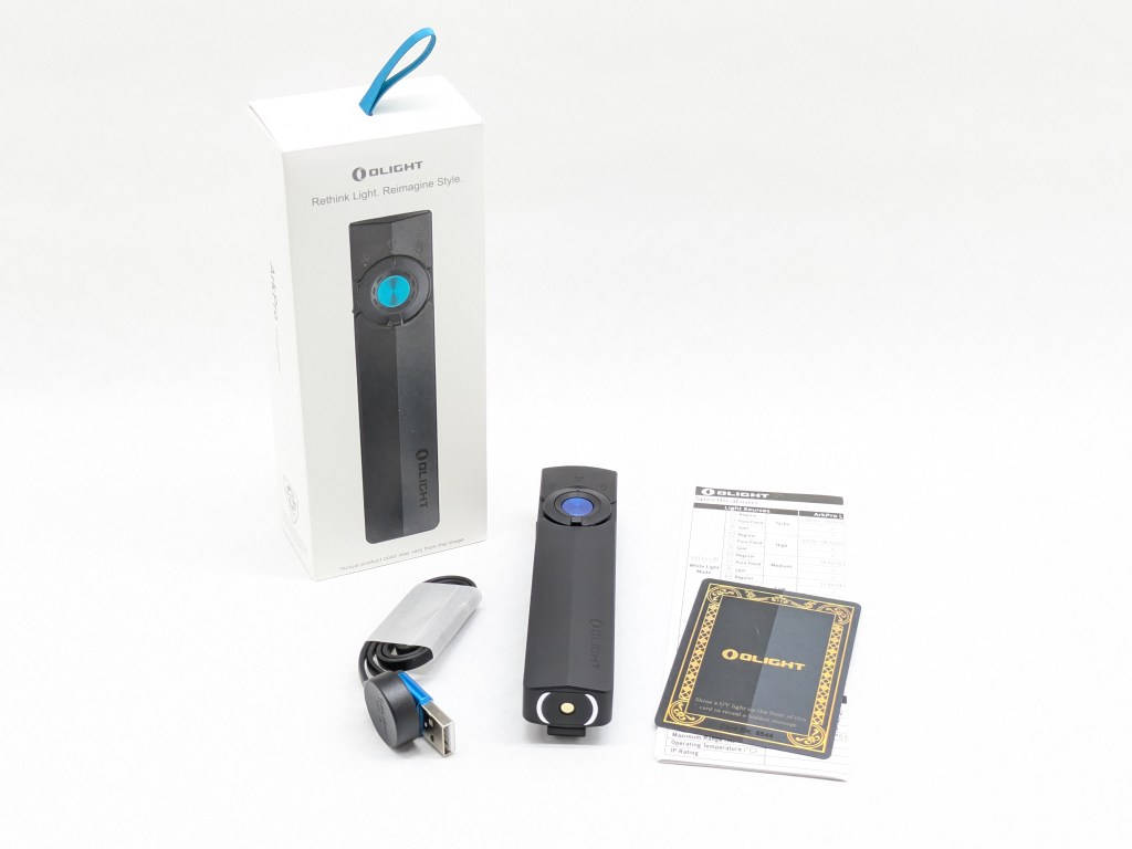 ArkPro comes in Olight’s simpler cardstock box with a vacuum-formed insert to secure the contents. Inside is: