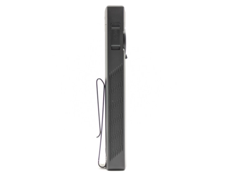 Charging is facilitated by an MCC port and a USB-C port! That’s a first for the Ark(feld) line and a huge improvement. Now existing Olight customers can use their existing chargers, and new customers don’t have to carry around a proprietary cable! The port is covered by a spring-loaded metal flap, and the light works while charging except Turbo. Charging takes about an hour and a half through the USB-C port.