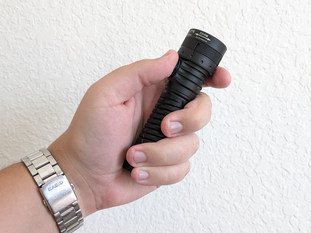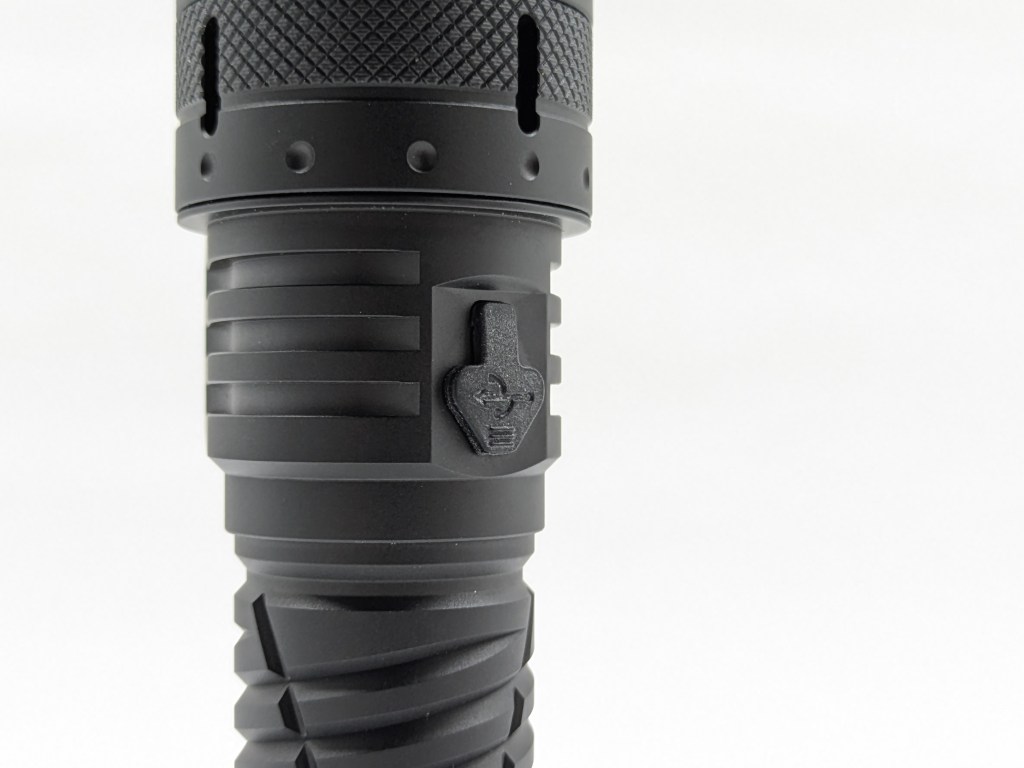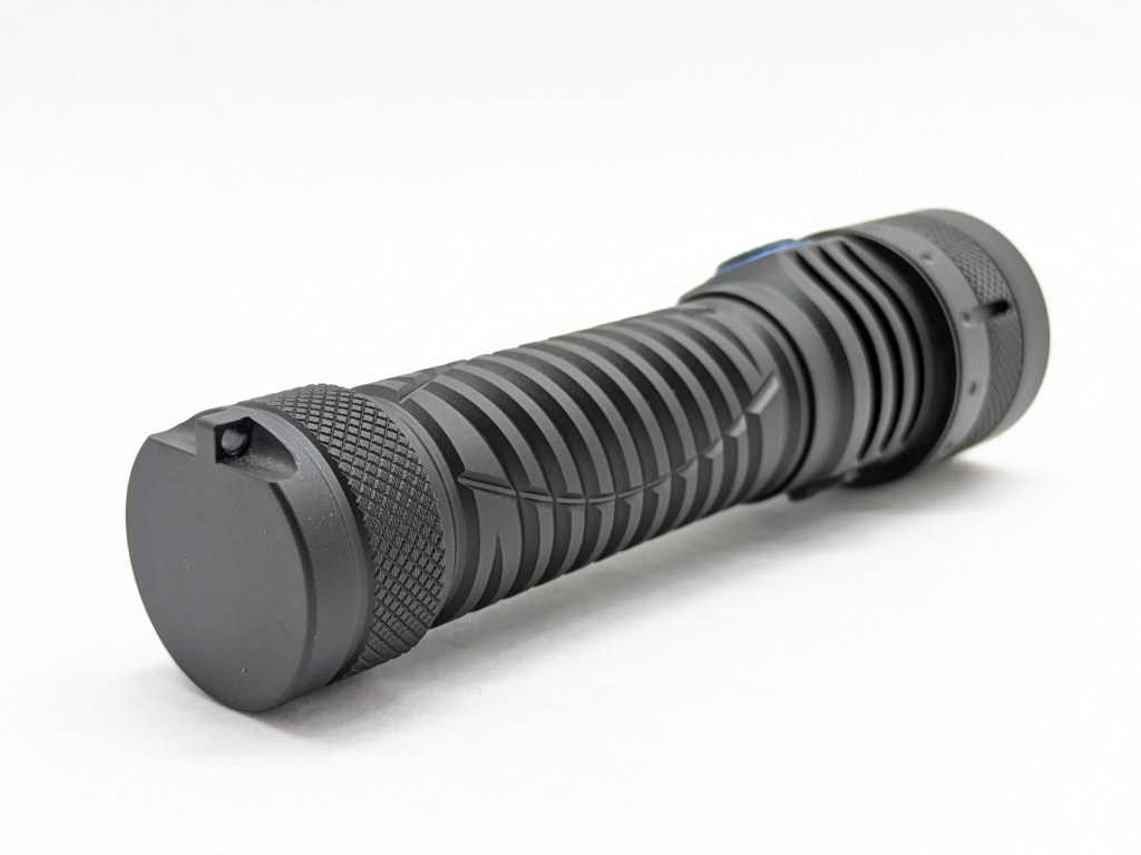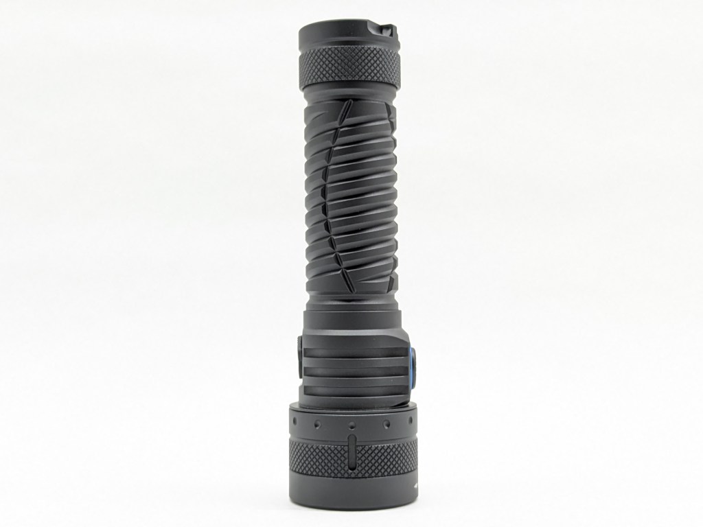 The design is a fairly standard side switch 21700-size layout. The key difference is the head twists and contains a zoom mechanism to adjust the beam shape.
