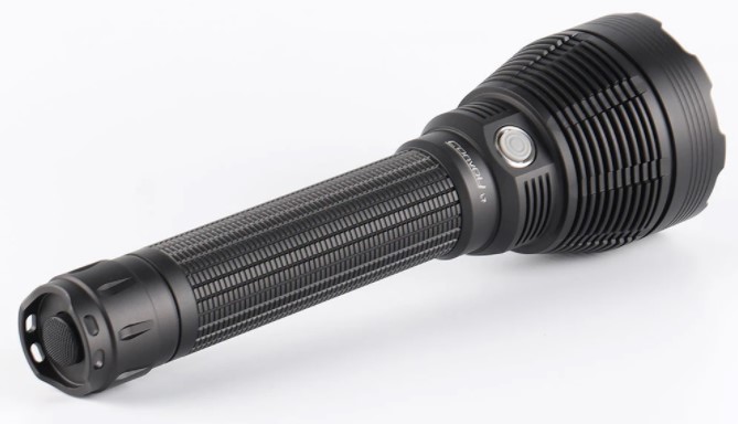 L21B is a medium size lightweight tailswitch 21700 thrower. The best emitter option is Luminus SFT40, which produces ~2000lm and nearly 400,000 candela in this host. I reviewed it here. If you want the most throw at the cost of lumens, or colored light, check out the Osram versions. There’s also a remote switch available.